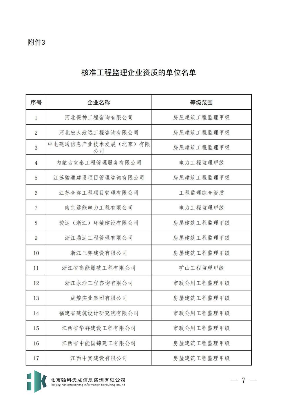 3.核准工程监理企业资质的单位名单