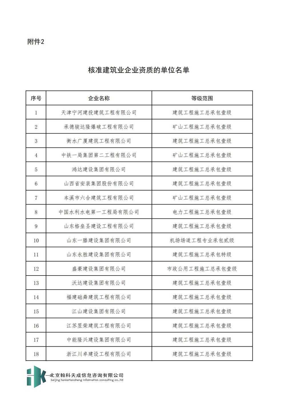 2.核准建筑业企业资质的单位名单