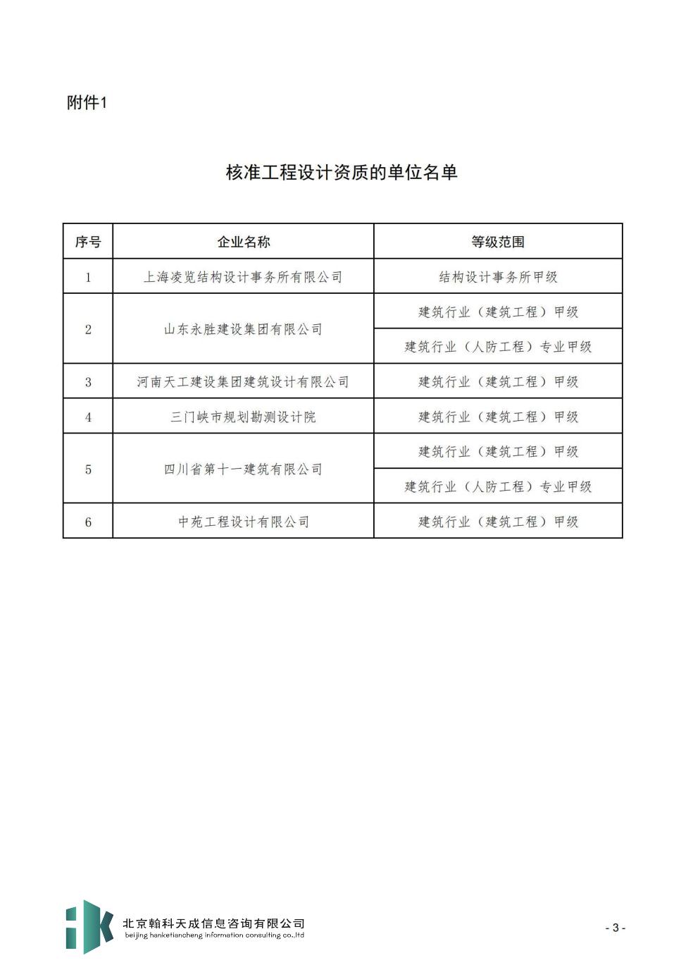 附件:1.核准工程设计资质的单位名单